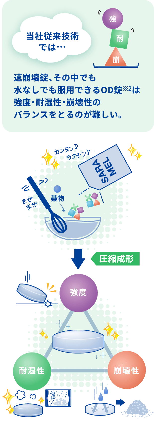 「高強度」 「高耐湿性」 「速崩壊性」の3要素が成立!